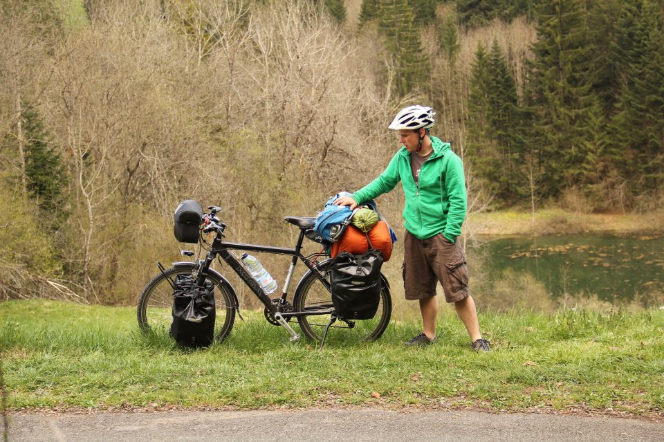 « Pas grand chose d’exceptionnel. Tente Humba Humba de chez MSR, c’est une tente 2 places pour pouvoir mettre mon matos à l’intérieur durant la nuit. Sac de couchage Waterbloc de chez Exped, qui est en partie imperméable, le bonheur ! Matelas de sol Neoair de Thermarest : léger et compact, à voir sur le long terme… Enfin le vélo : Koga, sûr et conçu pour le voyage :